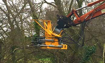 If the tree shear is often used to cut branches, a tilt function is useful. The tilt function allows the shear to be positioned perpendicular to the branch. This results in a clean cut. The tilting mechanism is placed between the shear and the excavator connection. The tilting mechanism can swivel 100°, of which 50° is to the left and 50° to the right. The tilting mechanism, in combination with the bucket cylinder, means almost any branch can be cut cleanly.