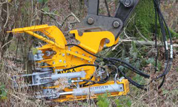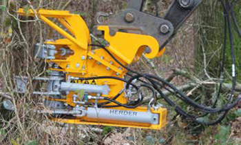The Herder tree shear can be used to cut bushes, branches and even whole trees. Two strong gripper arms ensure the cut material is held firmly. This allows the cut material to be brought down in a controlled manner. Herder tree shears are available in two variants: the KS650 and the KS860.